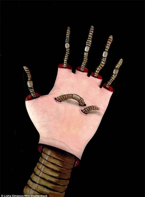 Nữ sinh ở Australia đã kỳ công vẽ những bức tranh 3D siêu thực trông rất đáng sợ trên cánh tay của mình.