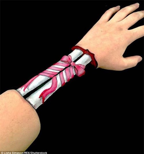 Những bức tranh 3D trên cánh tay của Lisha khiến người xem ngỡ như ảnh thật.