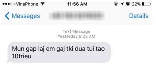 Nội dung tin nhắn tống tiền từ một số điện thoại lạ, được xác định là SIM rác (Ảnh do gia đình cung cấp)