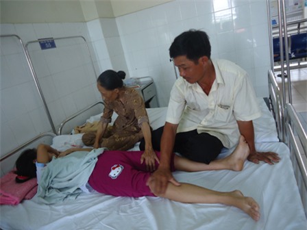 Đến ngày 28/4 em không thể đi lại, được chuyển lên điều trị tại bệnh viện Đại học Y dược Huế. Ngay trong ngày hôm đó em lại được chuyển qua cấp cứu tại Bệnh viện TW Huế tiếp tục điều trị. Đến ngày 13/5, em được chuyển lên Trung tâm Nhi khoa.