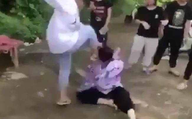 Nữ sinh bị bạn học túm tóc, trong khi nhiều em khác đứng "quây" xung quanh