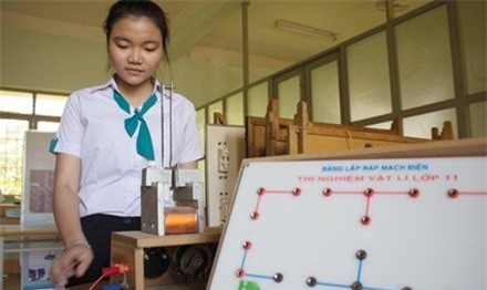 Nhiều lần lắp đặt thất bại, nhưng nhờ sự động viên, hướng dẫn tận tình của thầy Phạm Minh Hà (giáo viên Vật lý), em đã thành công. Tổng chi phí mất khoảng 15 triệu đồng, số tiền này được nhà trường hỗ trợ”, Trinh kể.