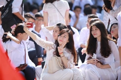 ![]() Chụp ảnh selfie cũng là một phần không thể thiếu với các nữ sinh trong ngày đầu năm học |