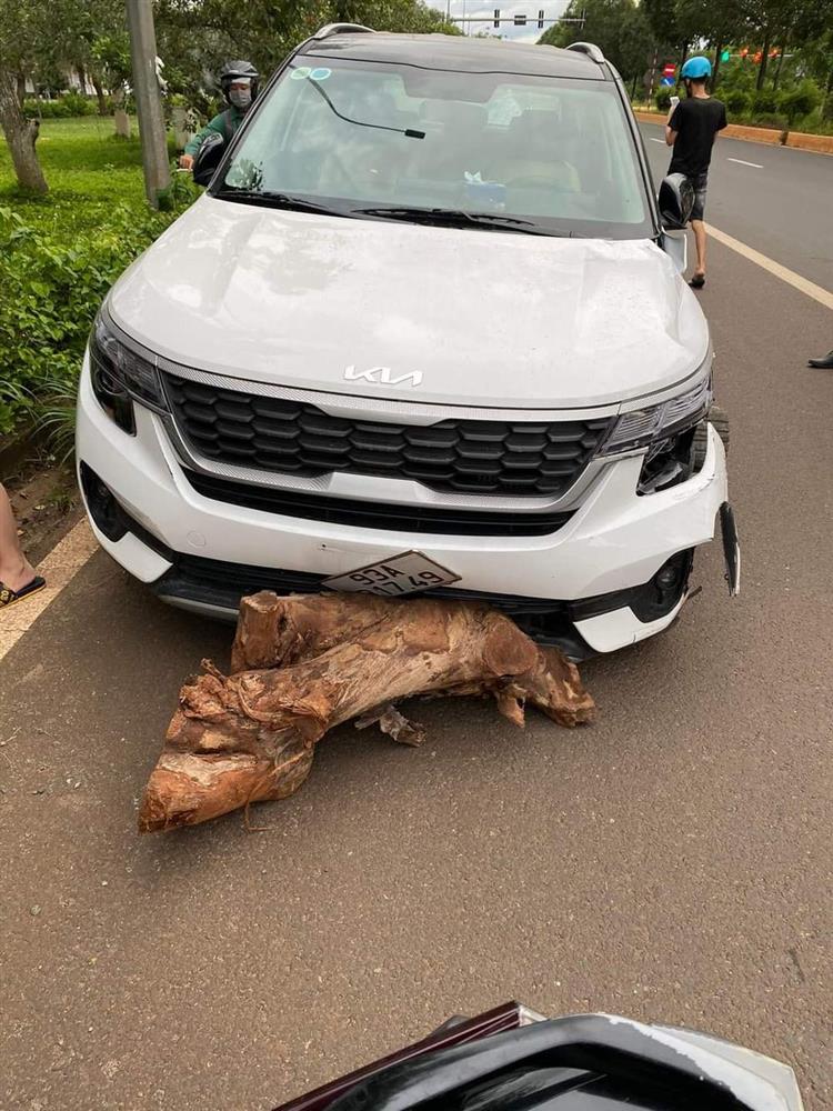 Nữ tài xế ở Bình Phước gây tai nạn rồi bỏ chạy, người dân truy đuổi, dùng cây gỗ chặn đầu (Nguồn: Phan Thành Trọng)