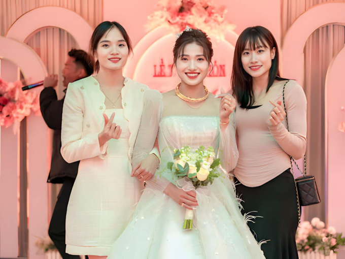 Cô dâu Linh Na mặc váy trắng nhẹ nhàng, tôn lên vóc dáng thon thả
