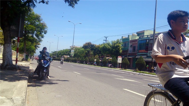 Giữa trưa, các con đường ở trung tâm TP Đồng Hới vắng ngắt, hơi nóng hầm hập từ đường nhựa bốc lên.