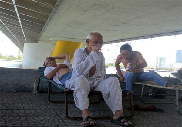 bóng cây bên đường và dọc bãi biển để tránh nắng. Ông Đồng Viết Luyện trú tại phường Hòa Minh đi xe hơn 3 km tới bờ sông Hàn để