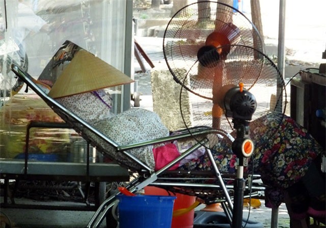 Đường xá không một bóng người, người dân ùa ra công viên trốn nóng. Những người phải mưu sinh thì tìm cho mình những kiểu trốn nóng riêng.