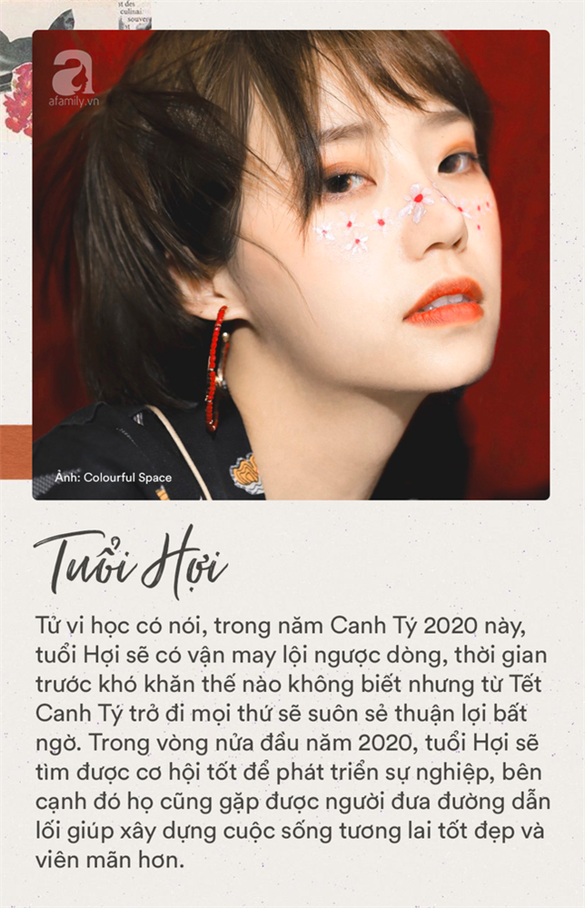 Tử vi học có nói, trong năm Canh Tý 2020 này, tuổi Hợi sẽ có vận may lội ngược dòng, thời gian trước khó khăn thế nào không biết nhưng từ Tết Canh Tý trở đi mọi thứ sẽ suôn sẻ thuận lợi bất ngờ. Trong vòng nửa đầu năm 2020, tuổi Hợi sẽ tìm được cơ hội tốt để phát triển sự nghiệp, bên cạnh đó họ cũng gặp được người đưa đường dẫn lối giúp xây dựng cuộc sống tương lai tốt đẹp và viên mãn hơn. Ngoài ra, cuộc sống tinh thần vốn đã ấm êm thì nay sẽ càng hạnh phúc và bền vững hơn.3. Tuổi Dậu