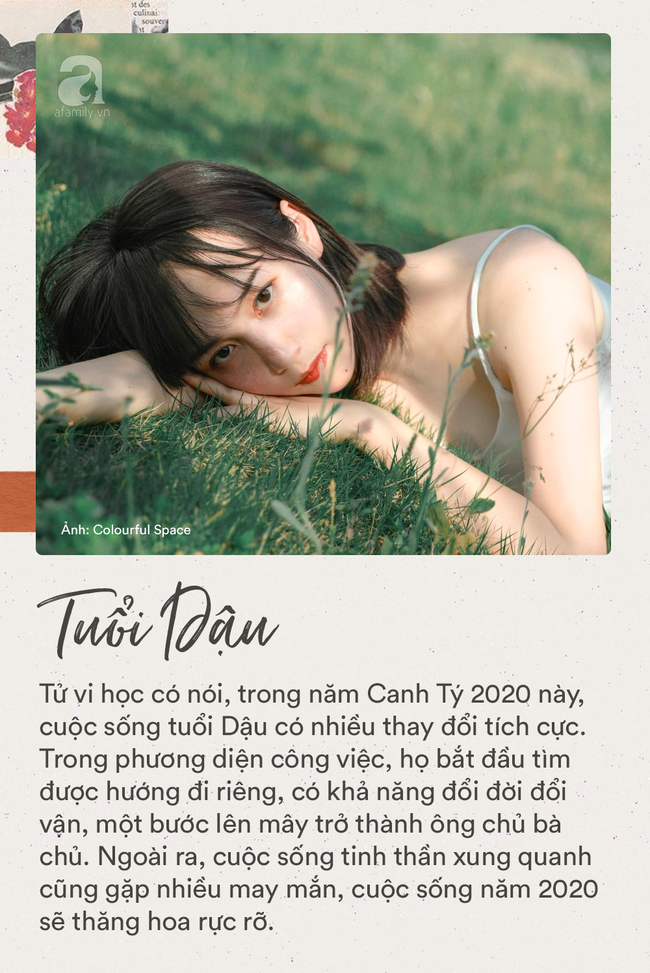 Tử vi học có nói, trong năm Canh Tý 2020 này, cuộc sống tuổi Dậu có nhiều thay đổi tích cực. Trong phương diện công việc, họ bắt đầu tìm được hướng đi riêng, có khả năng đổi đời đổi vận, một bước lên mây trở thành ông chủ bà chủ. Ngoài ra, cuộc sống tinh thần xung quanh cũng gặp nhiều may mắn, có những mối quan hệ tưởng chừng như không thể hàn gắn nhưng may mắn “gương vỡ lại lành", mọi sự tốt đẹp đều đến vào nửa đầu năm 2020 này, vì vậy tuổi Dậu phải cố gắng nắm bắt và tận hưởng.