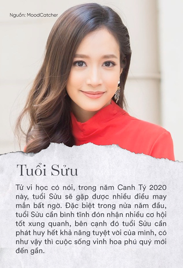 Tử vi học có nói, trong năm Canh Tý 2020 này, tuổi Sửu sẽ gặp được nhiều điều may mắn bất ngờ. Đặc biệt trong nửa năm đầu, tuổi Sửu cần bình tĩnh đón nhận nhiều cơ hội tốt xung quanh, bên cạnh đó tuổi Sửu cần phát huy hết khả năng tuyệt vời của mình, có như vậy thì cuộc sống vinh hoa phú quý mới đến gần. Ngoài ra, trong năm nay, tuổi Sửu sẽ có thần tài và quý nhân chiếu cố nồng hậu, hóa hung thành cát, chuyện rủi hóa lành, tài vận ngày một tăng chưa đủ mà cuộc sống tinh thần cũng thăng hoa viên mãn.