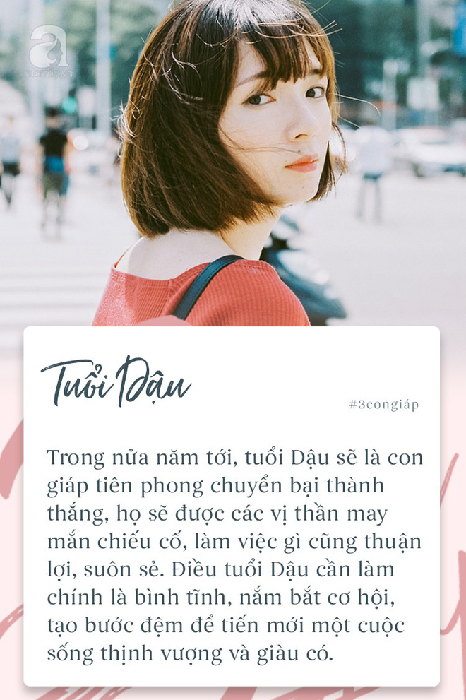 Trời sinh tuổi Dậu là những người siêng năng và luôn biết lao động sáng tạo. Họ ghét sự ù lì và muốn tự mình làm mọi thứ để có thể xây dựng cuộc sống sung túc viên mãn. Đây là con giáp có khả năng kiếm tiền rất tốt, tuy nhiên vận may chưa đến nên họ vẫn dậm chân tại chỗ. Thời gian trước, tuổi Dậu đã nhiều lần có những bước đột phá nhưng sự nghiệp nhưng không được thuận lợi, vì vậy họ vẫn chưa đạt được mục tiêu như mong muốn. Trong nửa năm tới, tuổi Dậu sẽ là con giáp tiên phong chuyển bại thành thắng, họ sẽ được các vị thần may mắn chiếu cố, làm việc gì cũng thuận lợi, suôn sẻ. Điều tuổi Dậu cần làm chính là bình tĩnh, nắm bắt cơ hội, tạo bước đệm để tiến mới một cuộc sống thịnh vượng và giàu có. Dự kiến cuối năm nay, tuổi Dậu sẽ cá kiếm được tài sản khá lớn, đủ để họ sống an nhàn đến vài năm sau.