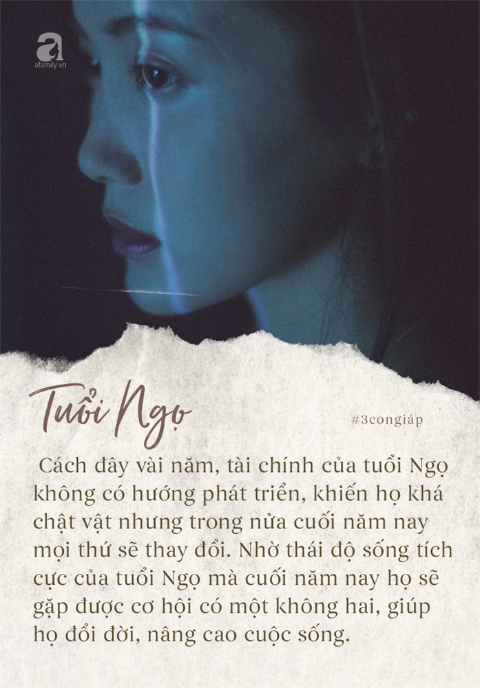 Nếu xét về sự lạc quan, tích cực, luôn biết tự tìm niềm vui trong cuộc sống thì không ai có thể qua được những người tuổi Ngọ. Trời sinh tuổi Ngọ có tính cách hoạt bát, thích tự do tự tại, thoải mái sáng tạo, nhờ vậy mà họ gặt hái được nhiều thành công. Những ngày đầu bước vào đời, tuổi Ngọ là những người tràn đầy năng lượng, sung sức nên làm gì cũng thuận lợi. Tuy nhiên, đến một giai đoạn họ bị chững lại, mọi thứ như dậm chân tại chỗ, có lúc tuổi Ngọ mất cả phương hướng. Tuổi Ngọ là người không coi trọng vật chất nhưng họ luôn nỗ lực, cố gắng để xây dựng cuộc sống tốt đẹp. Cách đây vài năm, tài chính của tuổi Ngọ không có hướng phát triển, khiến họ khá chật vật nhưng trong nửa cuối năm nay mọi thứ sẽ thay đổi. Nhờ thái độ sống tích cực của tuổi Ngọ mà cuối năm nay họ sẽ gặp được cơ hội có một không hai, giúp họ đổi đời, nâng cao cuộc sống, nếu may mắn hơn sẽ cá kiếm được khối tài sản mơ ước, đủ để sống dư dả đến vài năm sau.