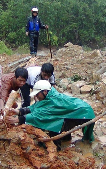 UBND huyện miền núi Sơn Tây (Quảng Ngãi) cho biết vào tối ngày 15/11, mưa lớn dữ dội đã làm hàng chục ngàn m3 đất đá của một ngọn núi đổ sập xuống, cuốn trôi ngôi nhà, vùi lấp vợ chồng anh Đinh Văn Lang và chị Đinh Thị Hiếp (thôn Gò Lã, xã Sơn Dung).