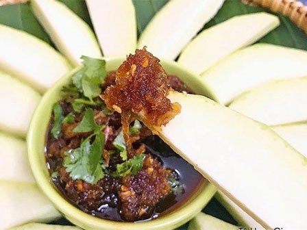 Với sốt chấm mắm ruốc này, xoài xanh hay cóc non có chua đến mấy cũng trở nên ngon lạ thường.