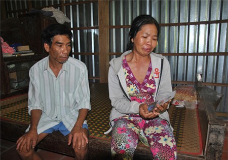 Vợ chồng anh Lực cầm tấm ảnh của bé Quý khóc không thành tiếng.