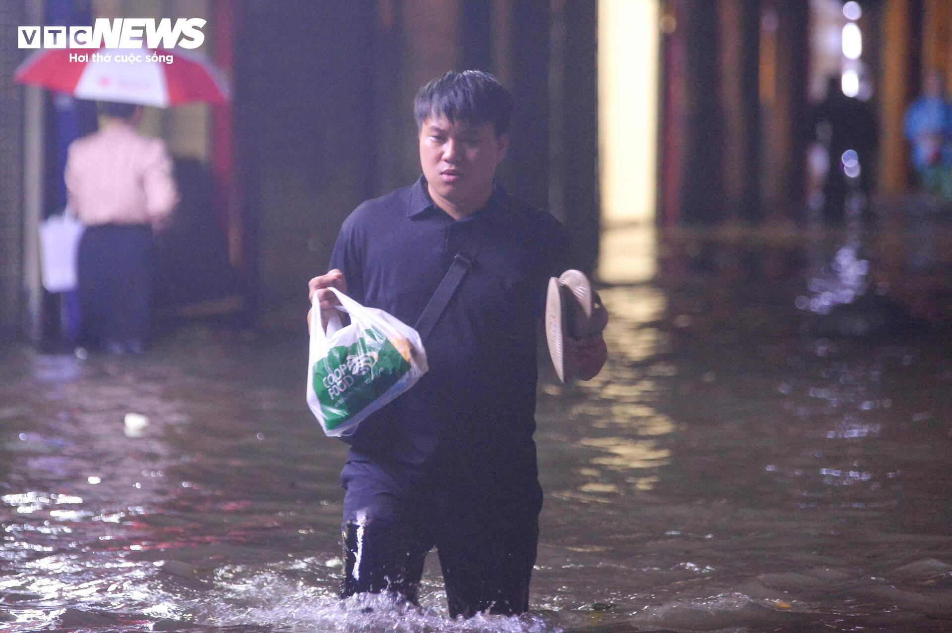 Dòng người dò dẫm từng bước tìm đường về nhà trong ngày Hà Nội ngập tứ phía.