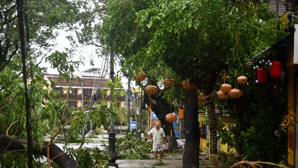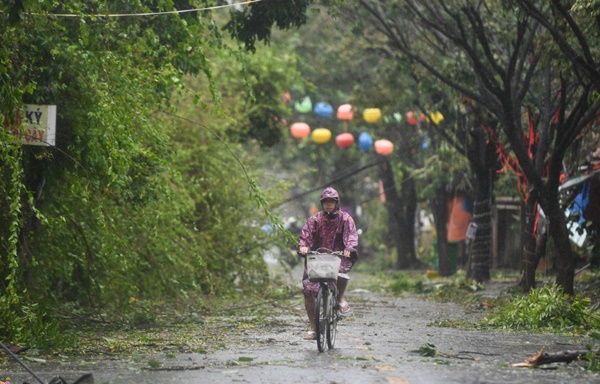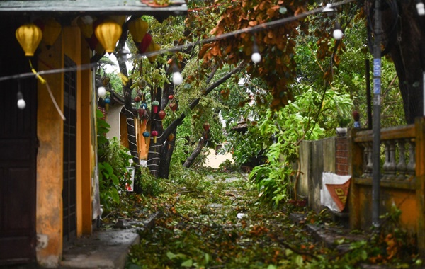 Cây cối đổ hàng loạt trên các tuyến đường tại TP Hội An, cản trở việc lưu thông trong khi đây là thời điểm nhiều người dân bắt đầu ra đường, dọn dẹp hậu quả mà bão Noru để lại.