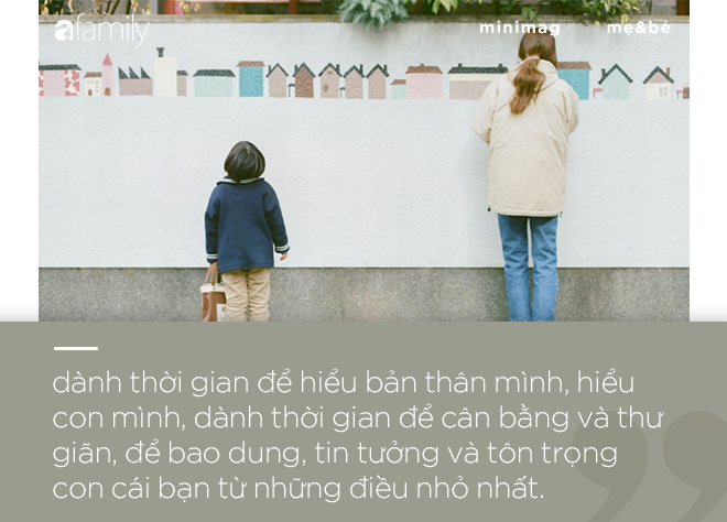 Học hỏi và cập nhật tri thức làm cha mẹ là điều vô cùng cần thiết và có ý nghĩa, tuy nhiên, nó chỉ thực sự tạo nên sự thay đổi và mang đến giá trị đích thực cho mối quan hệ cha mẹ, con cái của bạn khi bạn dành thời gian để thực hành những điều đó hàng ngày, dành thời gian để hiểu bản thân mình, hiểu con mình, dành thời gian để cân bằng và thư giãn, để bao dung, tin tưởng và tôn trọng con cái bạn từ những điều nhỏ nhất.
