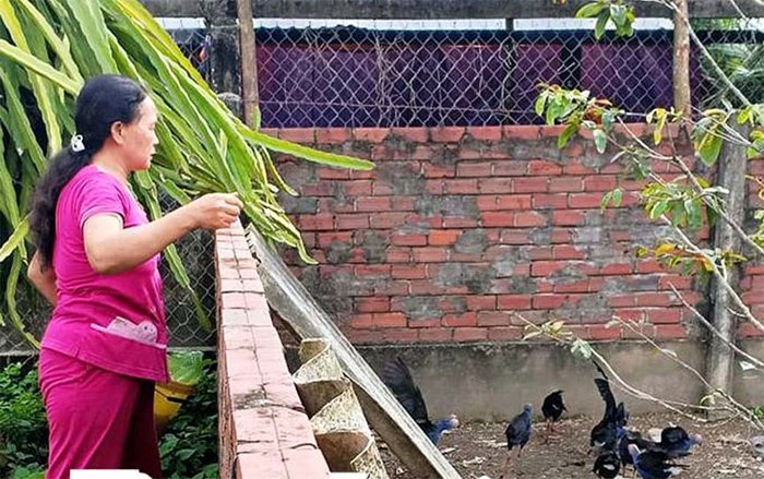 Bà Phạm Thị My (vợ ông Trần Văn Nam) cho đàn chim trích cồ ăn