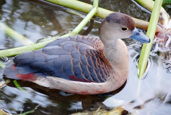 Le le không những biết bay mà còn bơi lội và lặn rất tài tình. Với đặc tính đó, chuồng nuôi le le phải rộng và thoáng, giữa có hồ nước, xung quanh trồng nhiều cỏ dại như sậy, lục bình, năng, lát để tạo môi trường hoang dã cho chim trú ẩn và đẻ trứng. Ảnh: I.T