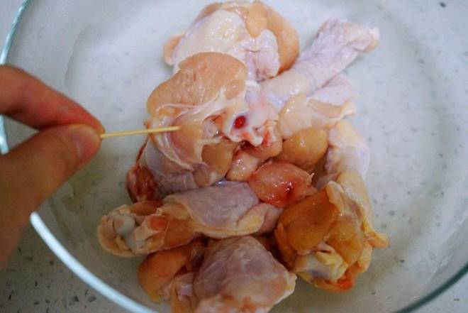 Cánh gà rửa sạch, dùng tăm hoặc dĩa nhọn đâm các lỗ trên bề mặt cánh gà để ngấm nhanh gia vị.