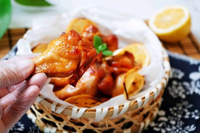 Hết thời gian, cho cánh gà nướng chanh ra, cánh gà thơm nức, mềm ngon, từ người già đến trẻ nhỏ đều thích.