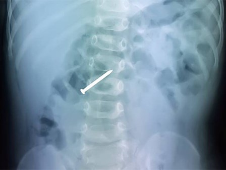 Khi cha mẹ phát hiện đồ chơi bị rớt mất một chiếc đinh thì bé trai đã nuốt phải.