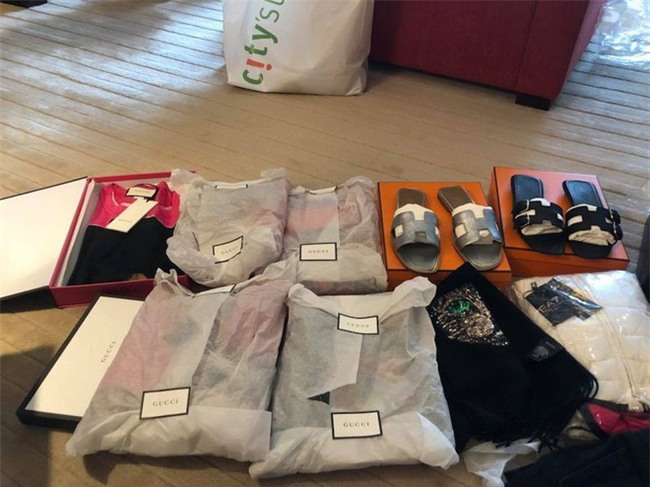 Thành tích shopping mới nhất của Mai Phương Thúy khiến ai cũng phải kiêng nể. Trong hình là túi Hermes Birkin, slip-on Chanel, sneaker Gucci, Valentino, giày mule lót lông Gucci cùng ti tỉ các loại áo quần khác. Tính sơ sơ, lần shopping này của cô cũng cỡ vài trăm triệu đồng.Cùng