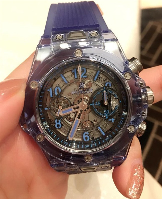 Đơn cử là chiếc Hublot bản xanh sapphire cực đắt giá này...