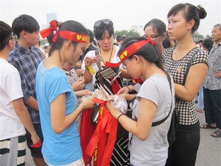 Tràn ngập sắc đỏ của băng đô in chữ “Tôi yêu Nick”