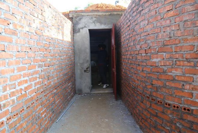Đường vào hầm bí mật heo hút trong vườn nhà với hệ thống cửa ra vào 3 lớp kiên cố bằng sắt thép.