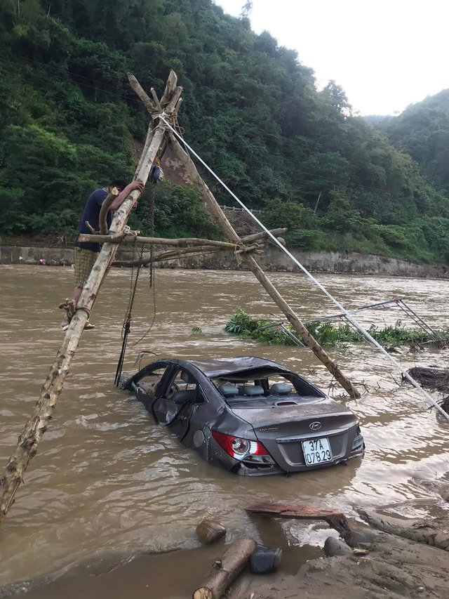 Chỉ trong chốc lát, chiếc xe ô tô này bị cuốn ra đường rồi đẩy trôi ra sông Nậm Mộ. Một số người dân phát hiện xe ô tô trôi gần mép sông cũng đã tìm cách xuống cứu nhưng ô tô nặng, nước chảy mạnh nên không thể cứu thành công.