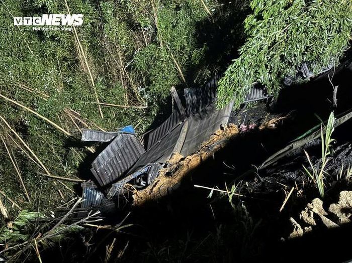Hiện trường nơi chiếc ô tô đầu kéo lao xuống vực (Ảnh: LLCNCC)