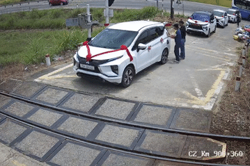 Lúc này, xe bị kẹt trong khu vực đường ray khi thanh chắn đường sắt hạ hai đầu. Rất may, sau vài phút mắc kẹt, T. lái ô tô thoát ra khỏi khu vực nguy hiểm trước khi tàu hỏa lao đến. Làm việc với cơ quan chức năng, tài xế này cho biết mượn xe của em vợ để chở người quen đi đám cưới. Tại cơ quan công an, T. nhận thức và thừa nhận toàn bộ hành vi vi phạm.