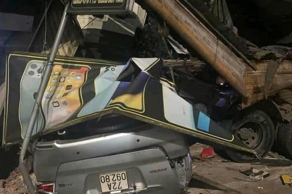 Khi đến km1710+600, xe khách bất ngờ tông vào đuôi xe đầu kéo biến số 73H - 000.xx kéo theo rơ-moóc chở cần cẩu chạy cùng chiều phía trước.