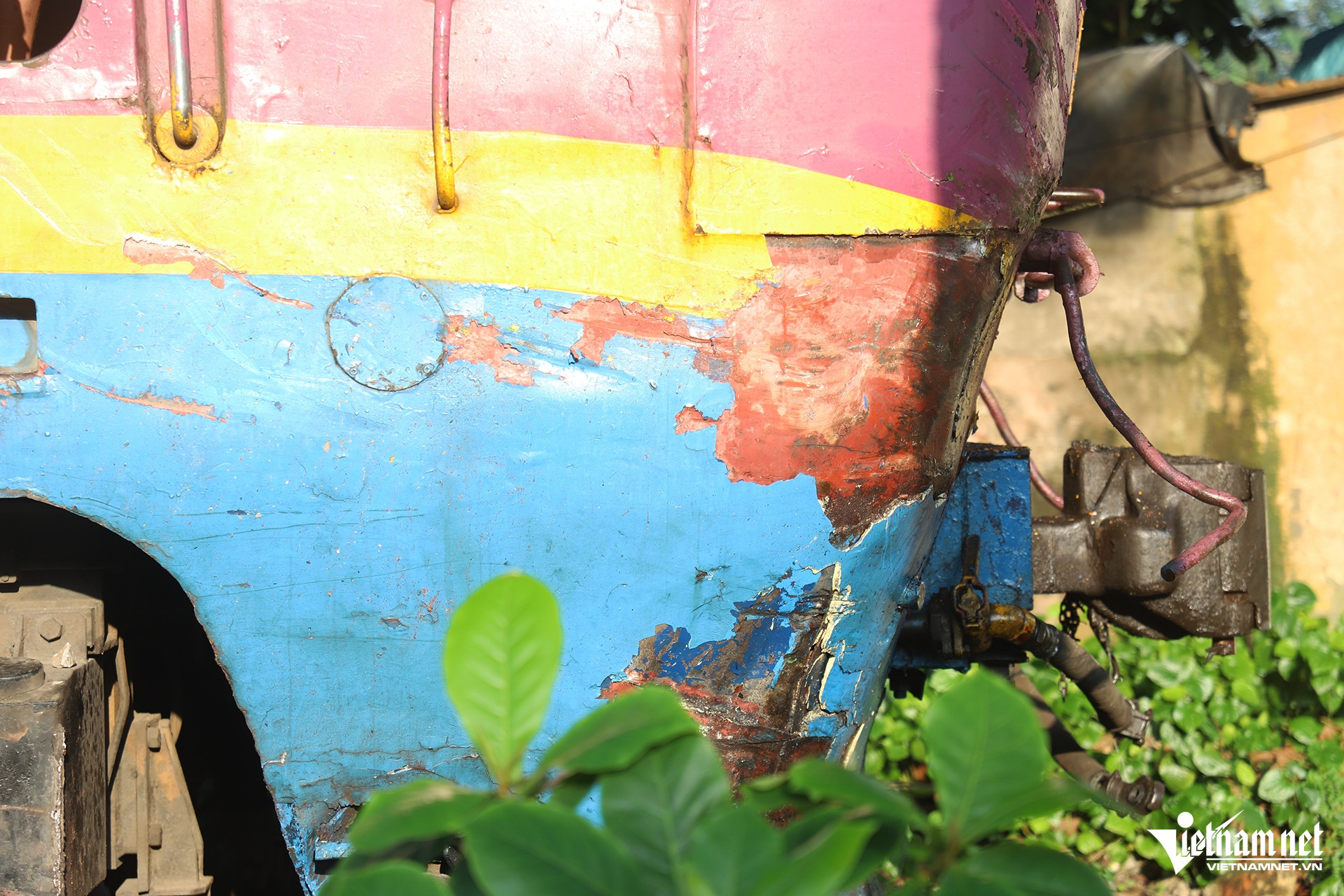 Đầu máy của tàu bị hư hỏng sau cú va chạm mạnh. Ảnh: Đình Hiếu
