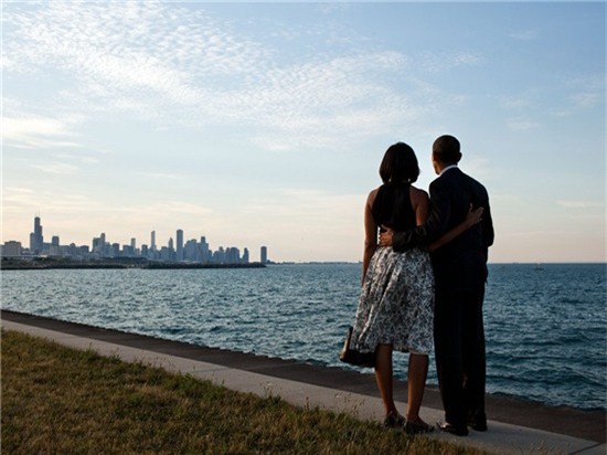Khoảnh khắc lãng mạn này, khi họ ôm nhau và cùng nhìn về một hướng, khi mà dường như xung quanh chỉ có tình yêu của họ là khoảnh khắc được ghi lại tại chính thành phố quê hương của hai người - Chicago vào ngày 15/6/2012