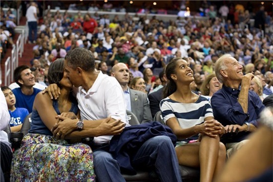 Dù cho trước mặt bao nhiêu người, dù cho bà cố vấn đặc biệt của ngài tổng thống Barack Obama có đang cười họ đi chăng nữa thì ông vẫn không ngần ngại thể hiện tình yêu của mình với vợ.