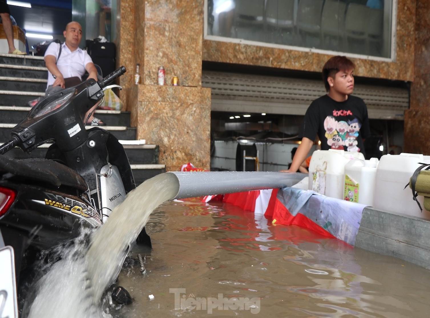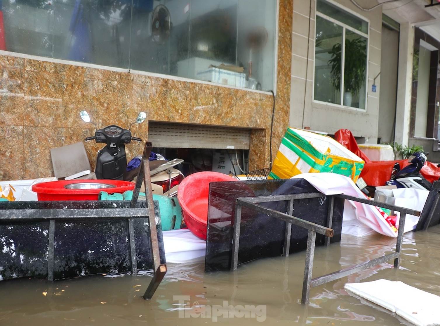 Ở phía ngoài mặt đường Lê Trọng Tấn nhiều ngôi nhà biệt thự liền kề chìm trong nước, dù đã có biện pháp chống ngập nhưng nhiều hầm vẫn ngập sâu trong nước, phải dùng máy bơm công suất lớn để đẩy nước ra ngoài.
