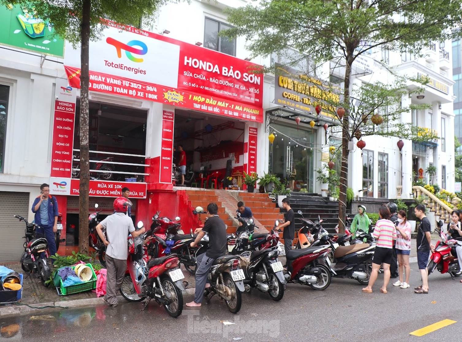 Dịch vụ sửa xe đắt khách vì nhiều xe máy đi qua khu vực nước ngập sâu bị chết máy.