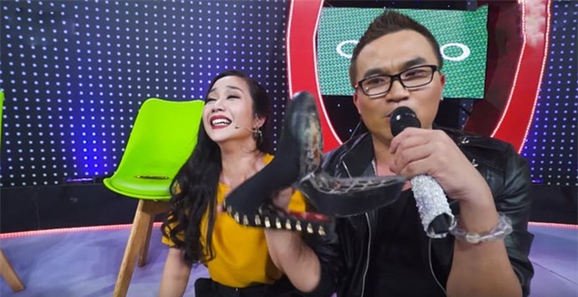 Tuy nhiên, lúc này MC Đại Nghĩa lên tiếng bóc mẽ đôi giày của Ốc Thanh Vân cũng bị rơi đế. Anh còn chế giễu bằng cách nhấn mạnh: “Thưa quý vị, một ngôi sao sân khấu, một MC đình đám, một người mẹ ba con mà mang giày như thế này. Đúng là gieo nhân nào, gặt quả đó. Ốc Thanh Vân vừa vạch mặt thí sinh thì cô cũng rơi vào tình huống tương tự”.
