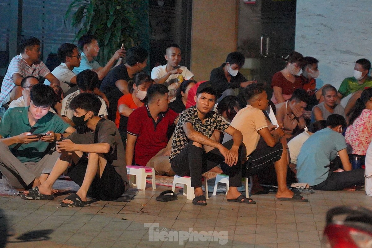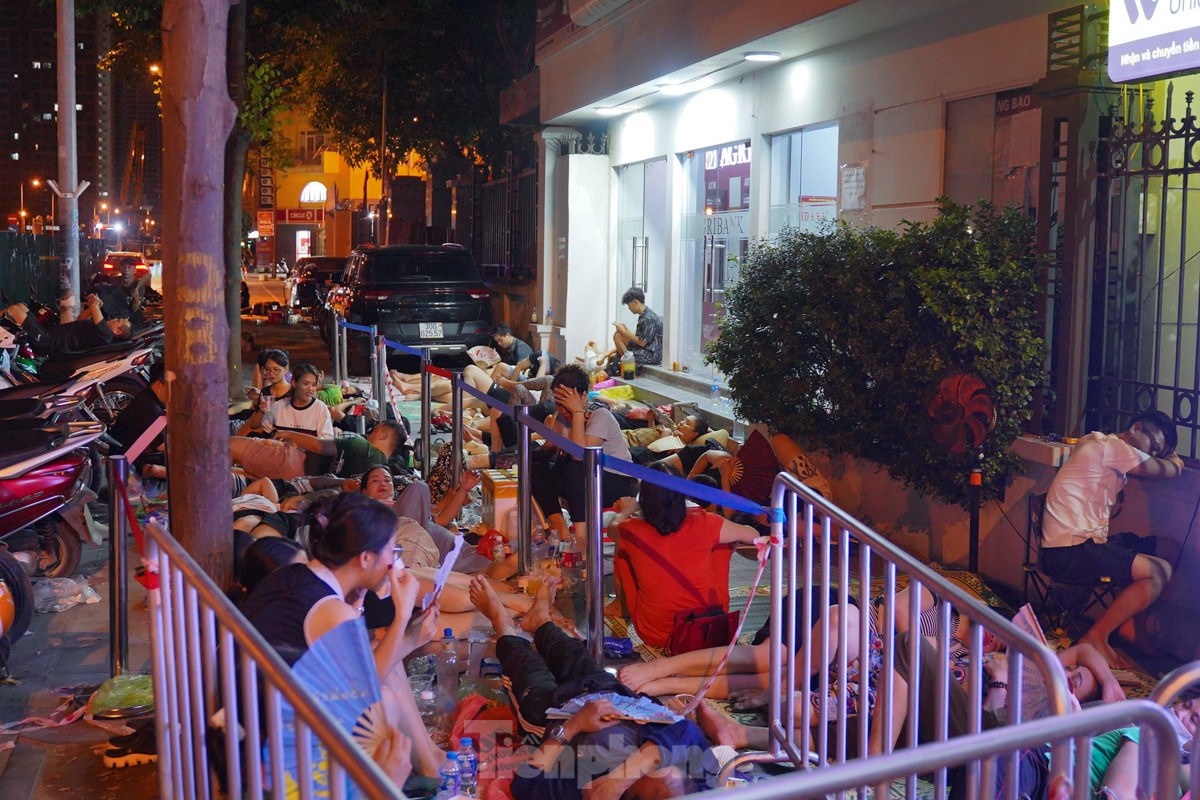 Chị Phùng Thị Nhung (ở Hoàng Mai, Hà Nội) bán hàng đối diện chi nhánh ngân hàng BIDV Bà Triệu. "Tôi thấy người dân xếp hàng từ rất sớm, 10h tối đã đông nghẹt, ai đến đây cũng mang theo chiếu, đồ ăn để sẵn sàng ngủ lại".