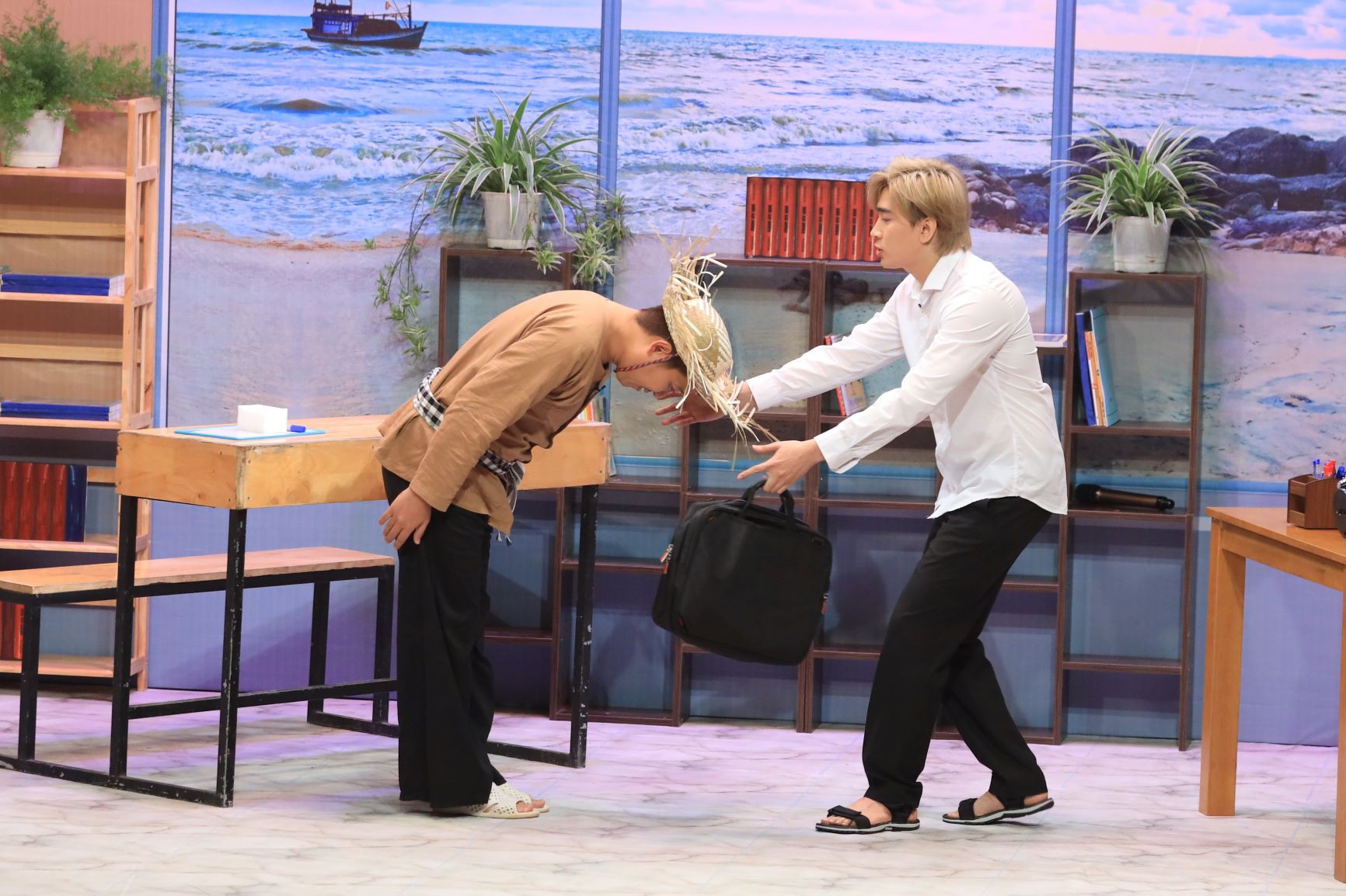 Chi Dân hóa thân là người thầy giáo bị trôi dạt vào một đảo hoang và phải đối mặt với nhiều rắc rối do "chúa đảo" Trường Giang đưa ra. Lúc này, nam trưởng phòng "cà khịa" Chi Dân "hát dở nên bị antifan tẩy chay" đuổi ra đảo. Chưa dừng lại ở đó, Trường Giang tiếp tục yêu cầu Chi Dân chỉ cách viết chữ Lan và chữ Ngọc trên sân khấu khiến anh chàng bối rối.