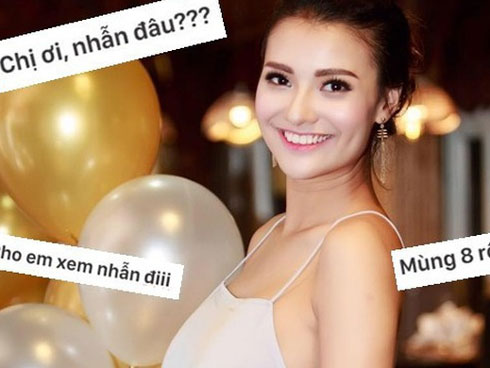 Khẳng định sẽ có nhẫn, Hồng Quế tiết lộ đến mùng 8 Tết sẽ khoe với "cả thiên hạ" để chứng minh mình không sống ảo. Tuy vậy, đến đúng ngày mùng 8 Tết thì tên của người đẹp lại bị réo dữ dội lên khi không trưng được hàng như đã tuyên bố. Hàng trăm cư dân mạng "tổng tấn công" trang cá nhân của chân dài họ Trịnh.