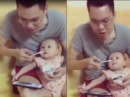 Cách mà ông bố này cho con ăn khiến người xem cười nghiêng, cười ngả. Có một hộp sữa chua mà ông bố "thử lòng" cô con gái hết lần này lần khác.