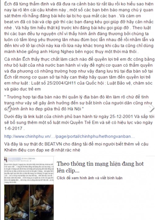 Thứ 3: Khiêm chỉ coi con mình là công cụ để kiếm tiền. Nếu những người thật sự thương con sẽ không để con ngồi sau xe đạp mà ngửa cổ cả đêm lên trời thế đâu, xong ban ngày phóng xe máy như điên toàn để con ngồi sau ôm ai nhìn cũng phải sợ.