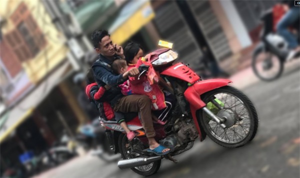 Hình ảnh Khiêm chở 3 đứa con bằng xe gắn máy gây xôn xao.