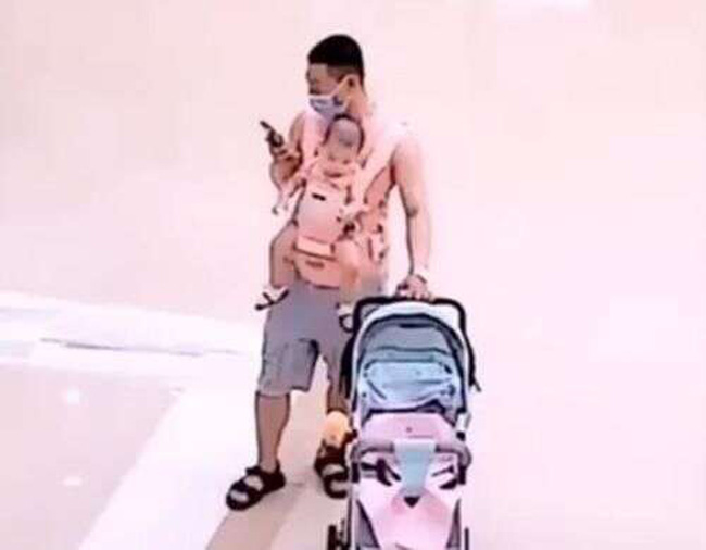 Nói tóm lại, sự may mắn của ông bố này là đã địu con lên người trước khi mải mê lướt điện thoại. Cho nên, đã không có tình huống xấu như bắt cóc xảy ra.