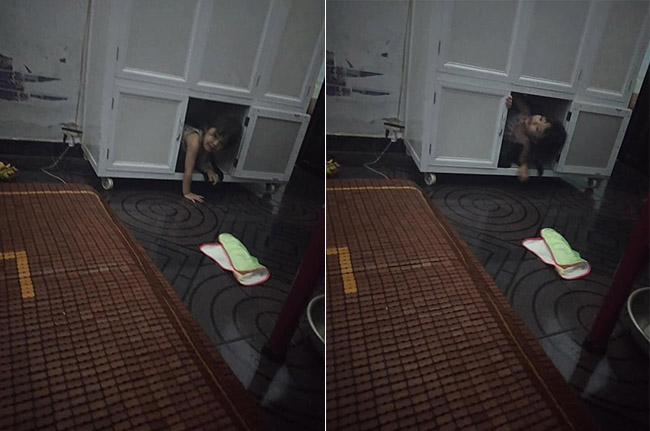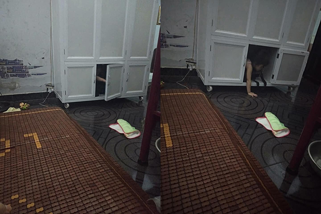 Cô con gái trốn vào ngăn dưới tủ quần áo...